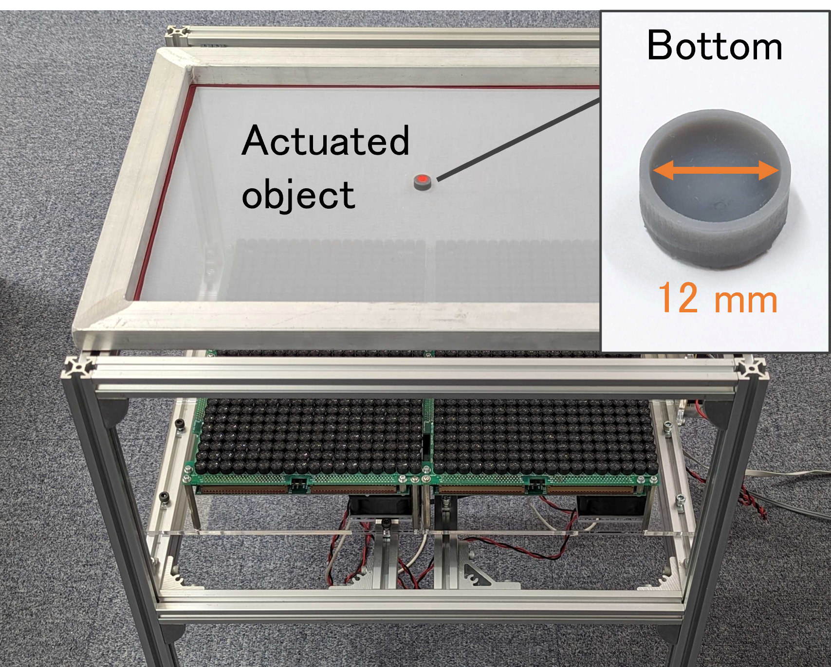 この物体は底にくぼみがあり,音波を遮らないメッシュスクリーンの上であれば,任意の軌道で位置を制御できます.